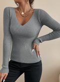 Luxury Rib-Knit V-Neck Sweater for Women