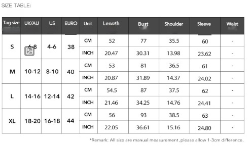 1. Asian sizes are 1 to 2 sizes smaller than European and American people. Choose the larger size if your size between two sizes. Please allow 2-3cm differences due to manual measurement. 2. Please check the size chart carefully before you buy the item, if you don't know how to choose size, please contact our customer service. 3.As you know, the different computers display colors differently, the color of the actual item may vary slightly from the following images.