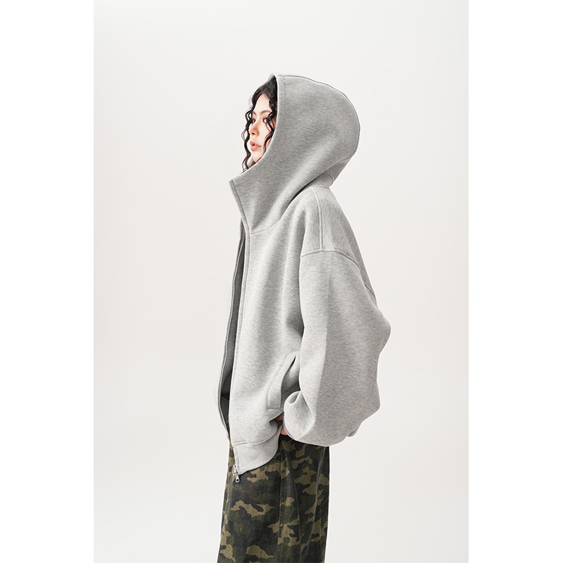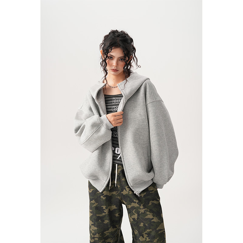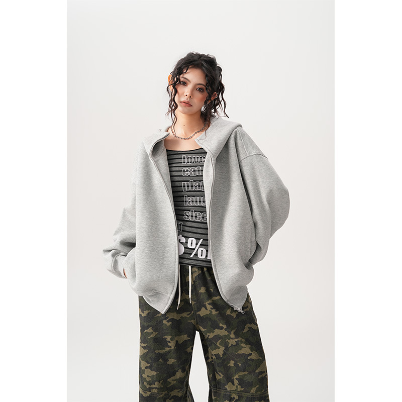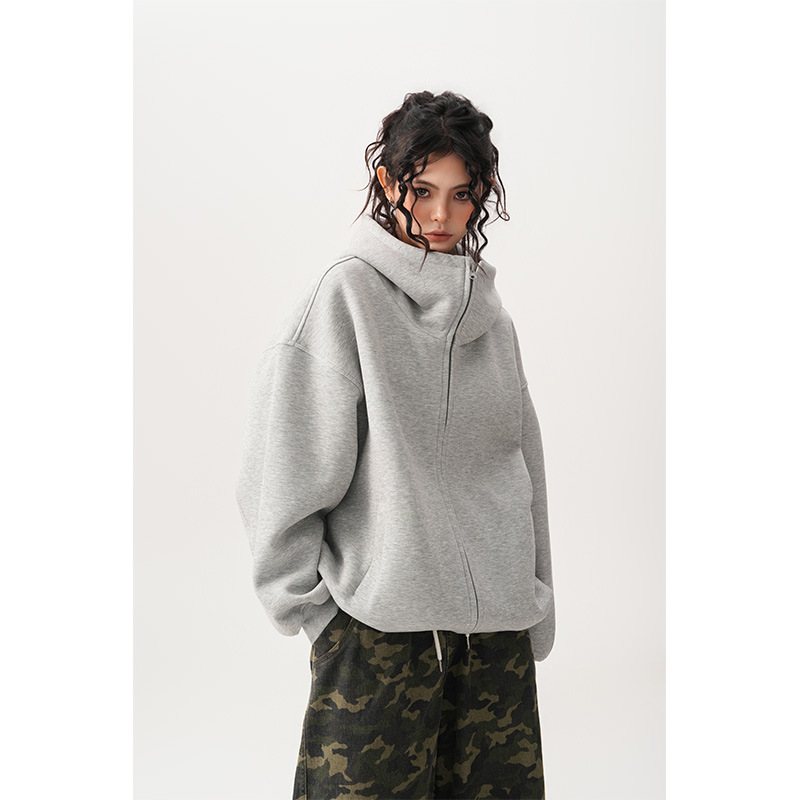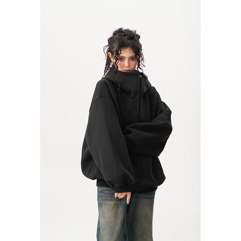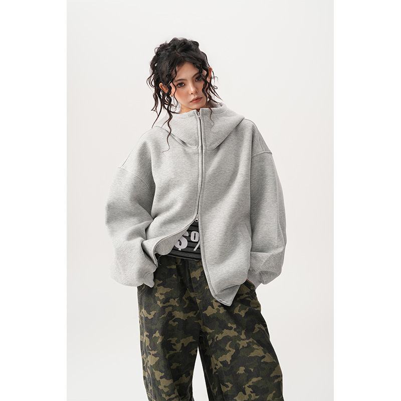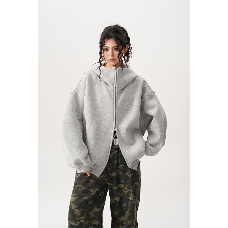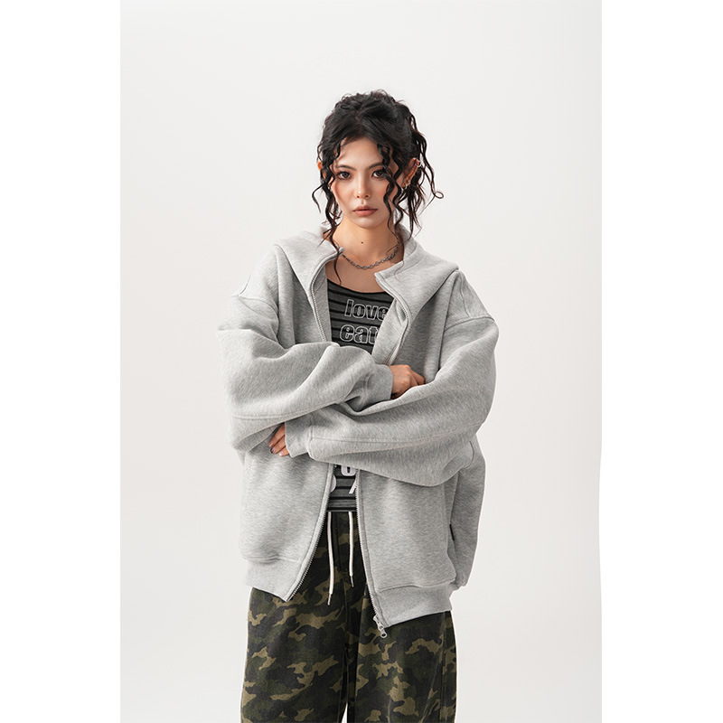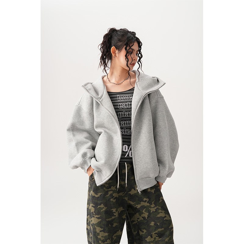 Womens Relaxed-fit American-style Hooded Cardigan With A Stand-up Collar