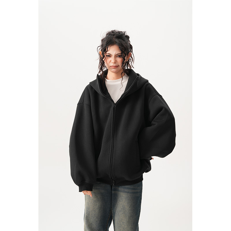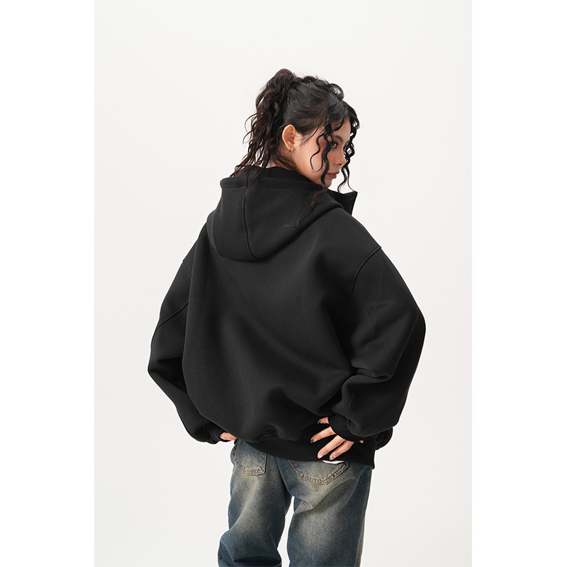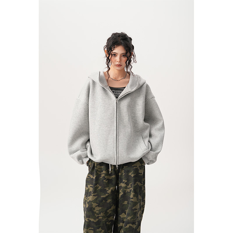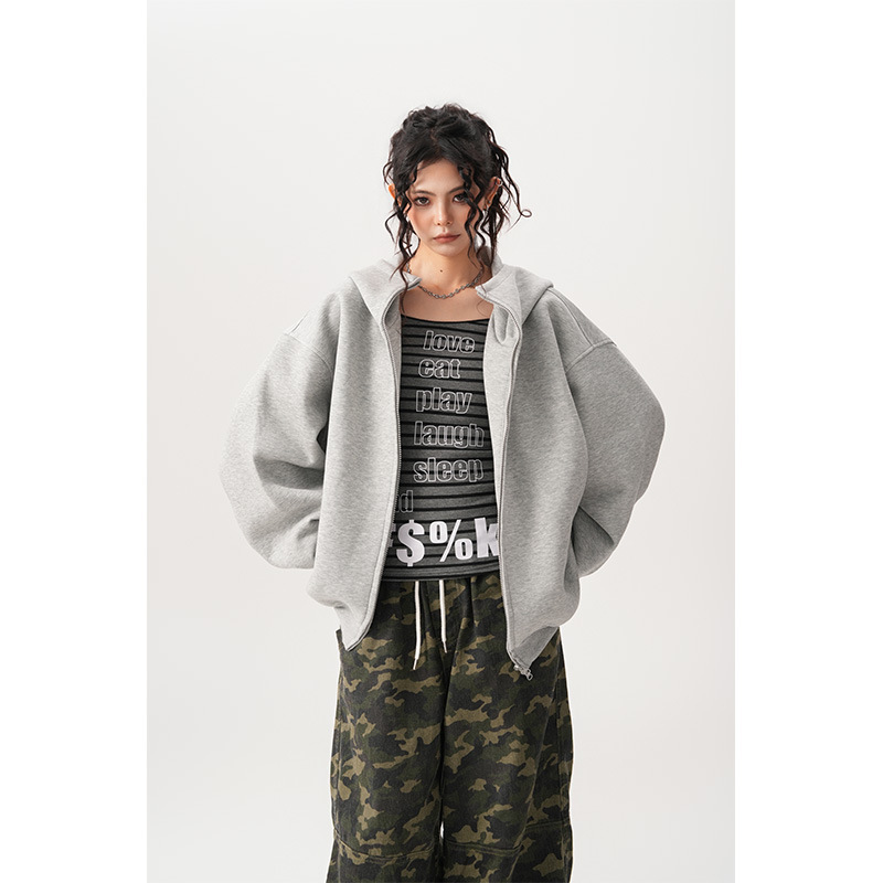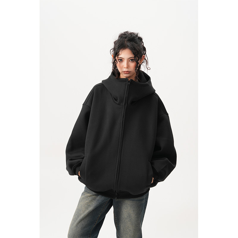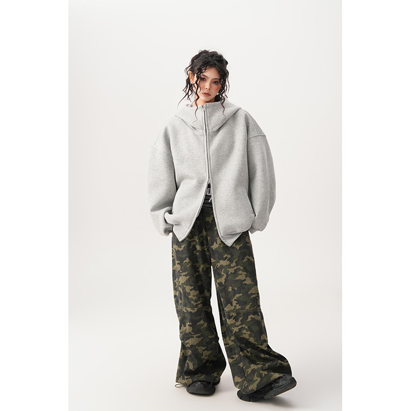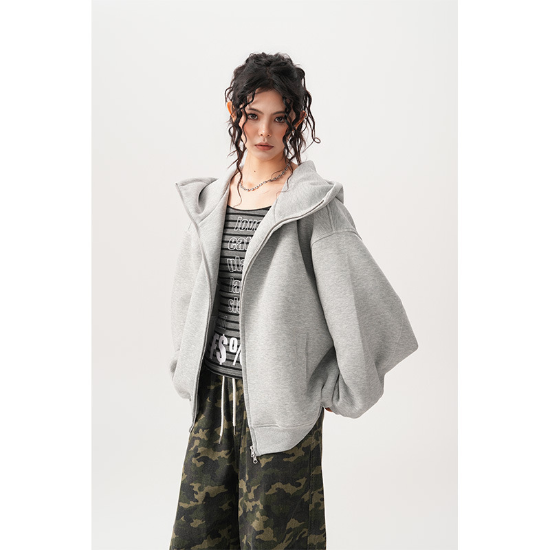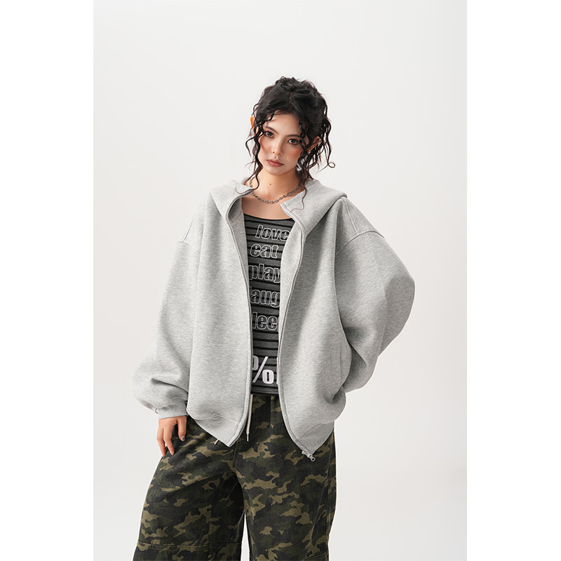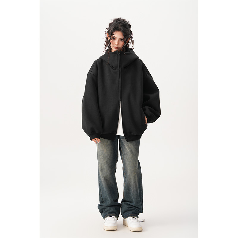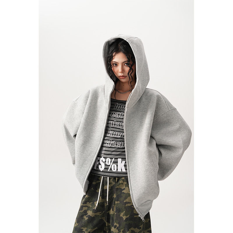 Womens Relaxed-fit American-style Hooded Cardigan With A Stand-up Collar